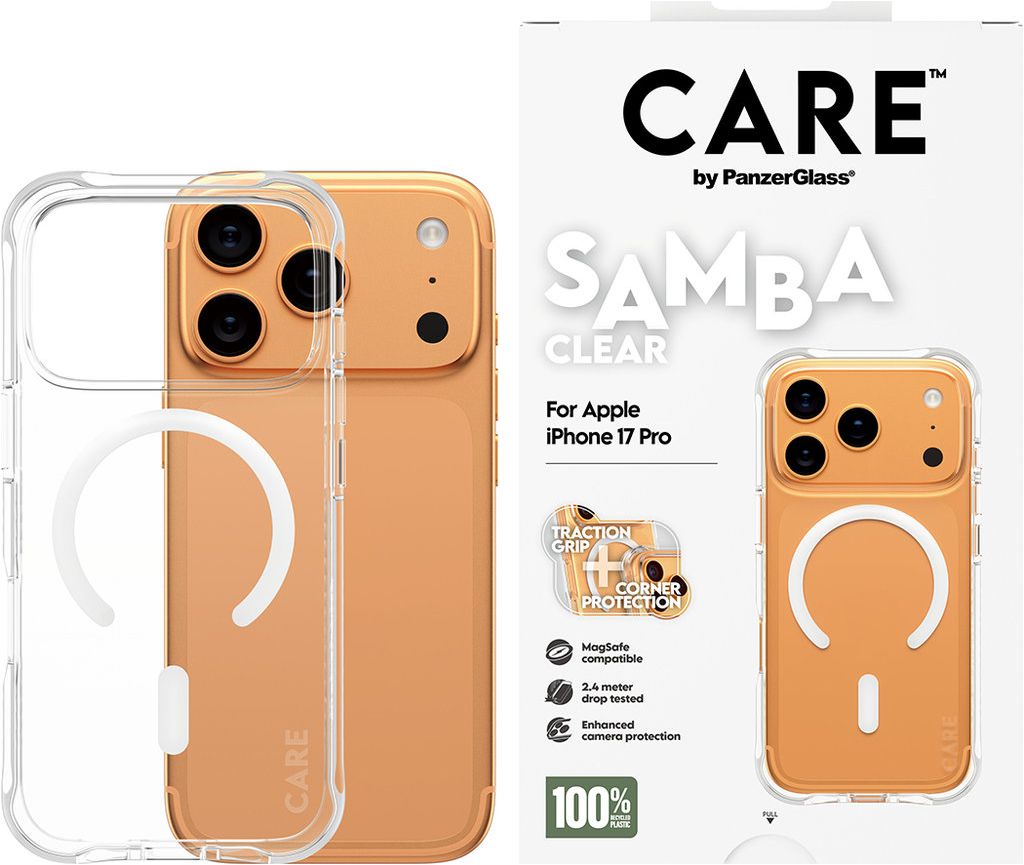 Geef je telefoon robuuste bescherming met de CARE by PanzerGlass Fashionable backcover. Dit hoesje beschermd de achter- als zijkanten van je Apple iPhone 17 Pro. Het stevige ontwerp biedt een solide verdediging tegen schade bij vallen en ongelukken.