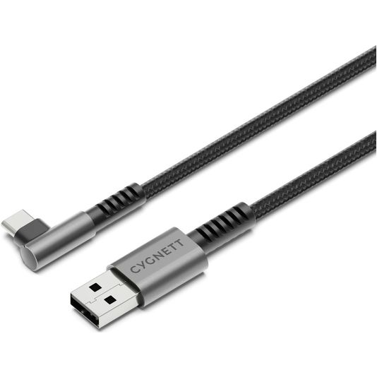 Cygnett Angled Braided USB-A naar USB-C Kabel 1 Meter - Zwart
