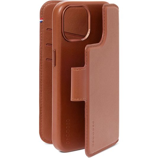 Decoded Detachable Wallet iPhone 15 Plus MagSafe Hoesje Echt Leer Uitneembare 2in1 Bookcase Portemonnee - Bruin