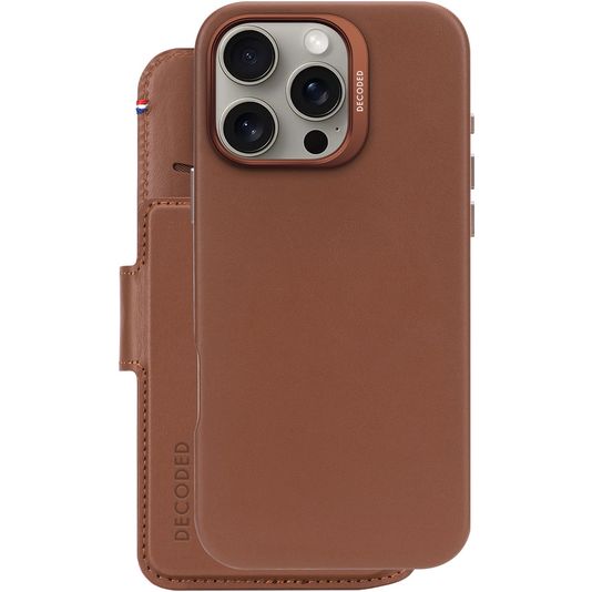Decoded Detachable Wallet iPhone 16 Pro Max MagSafe Hoesje Echt Leer Uitneembare 2in1 Bookcase Portemonnee - Tan