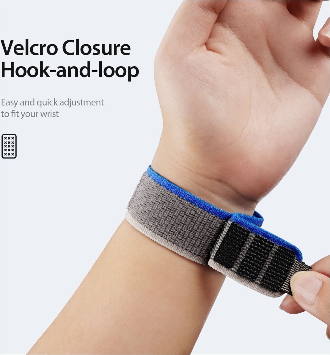 Geniet van een nauwsluitende en aanpasbare pasvorm met dit Apple Watch bandje met klittenbandsluiting. Het bandje is gemakkelijk verstelbaar op elke polsmaat en zit stevig vast, terwijl afdoen ook eenvoudig en snel gaat.