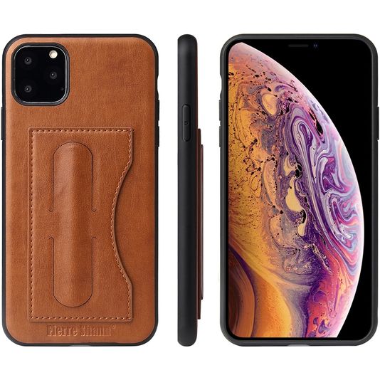 Fierre Shann Card Pocket iPhone 11 Pro Hoesje Backcover met Pasjeshouder en Standaard - Cognac