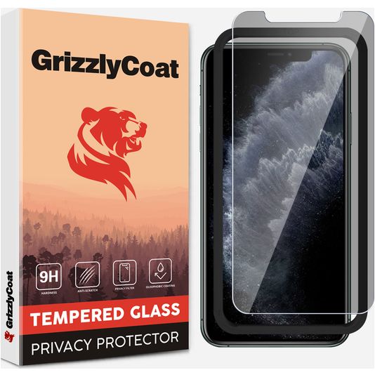GrizzlyCoat Easy Fit AntiSpy iPhone 11 Pro Max Glazen Screenprotector Privacy - Case Friendly + Installatie Frame