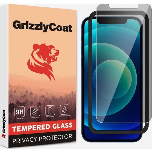 GrizzlyCoat Easy Fit AntiSpy iPhone 12 Mini Glazen Screenprotector Privacy - Case Friendly + Installatie Frame
