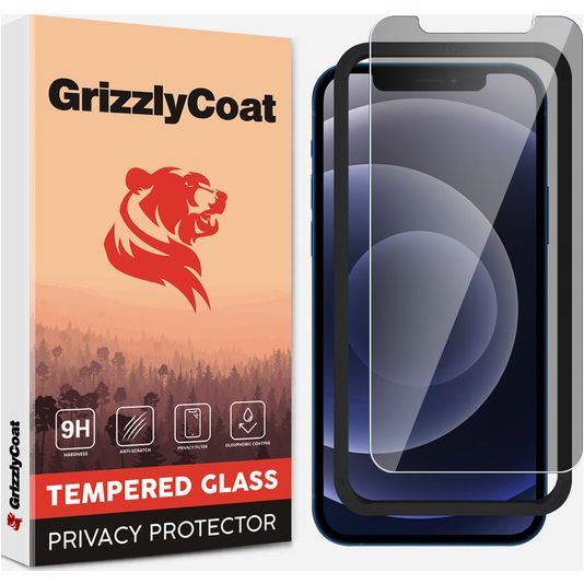 GrizzlyCoat Easy Fit AntiSpy iPhone 12 Pro Max Glazen Screenprotector Privacy - Case Friendly + Installatie Frame