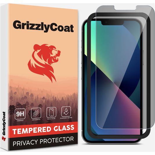 GrizzlyCoat Easy Fit AntiSpy iPhone 13 Mini Glazen Screenprotector Privacy - Case Friendly + Installatie Frame