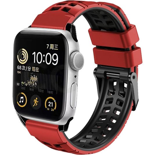 Mobigear Aero Armor Siliconen Apple Watch Bandje Gespsluiting - 42/41/40/38 mm - Rood / Zwart