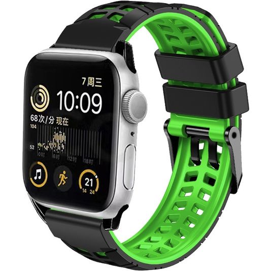 Mobigear Aero Armor Siliconen Apple Watch Bandje Gespsluiting - 42/41/40/38 mm - Zwart / Groen