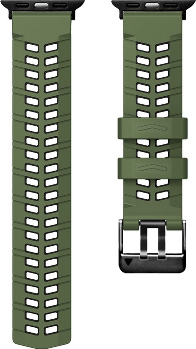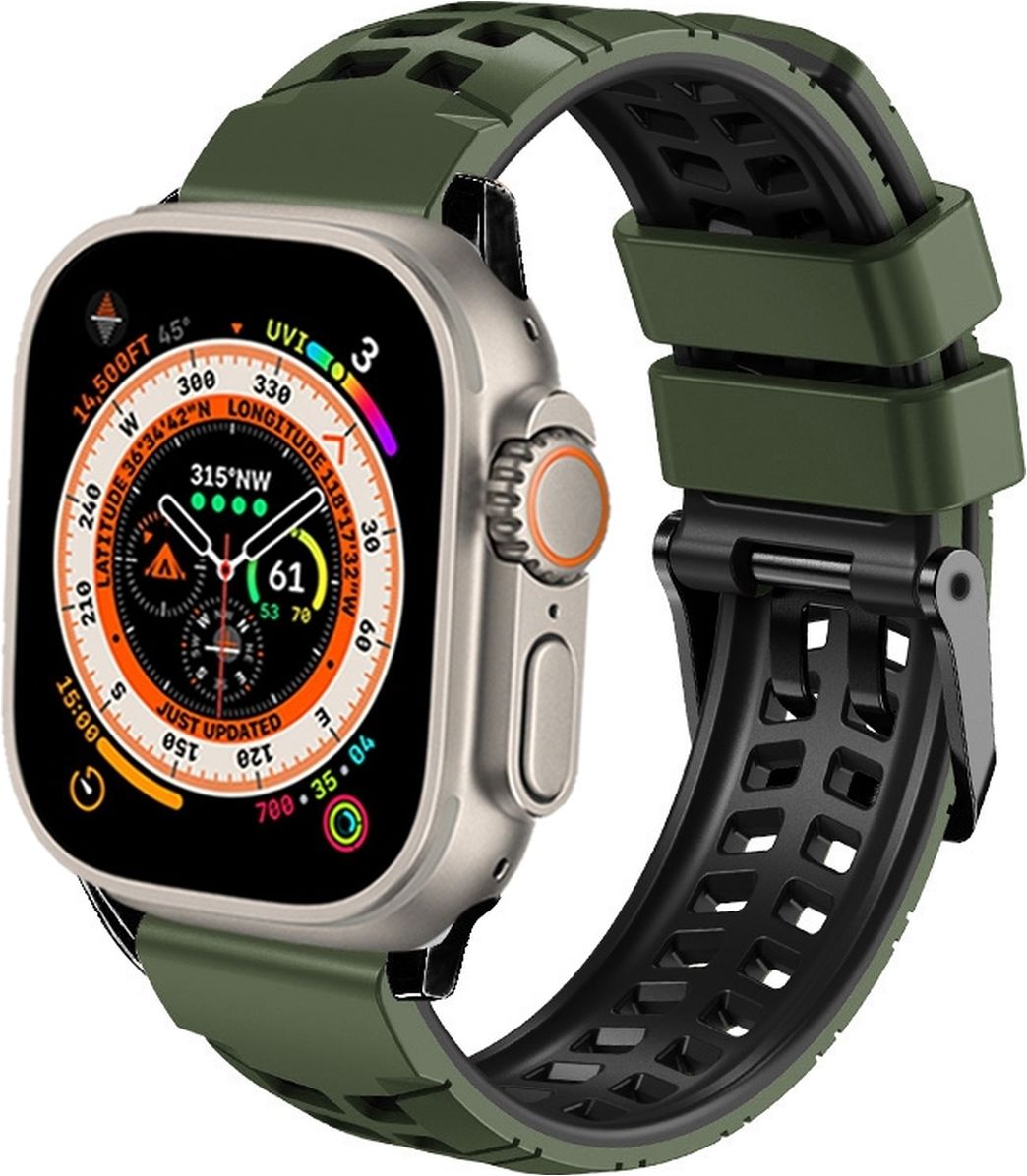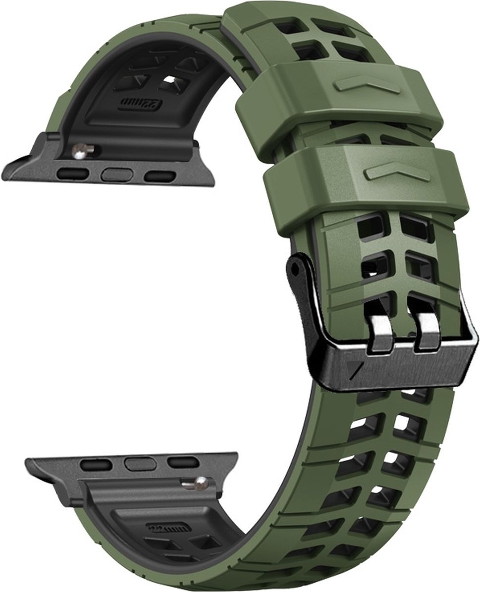 Mobigear Aero Armor Siliconen Apple Watch Bandje Gespsluiting - 49/46/45/44 mm - Zwart / Groen