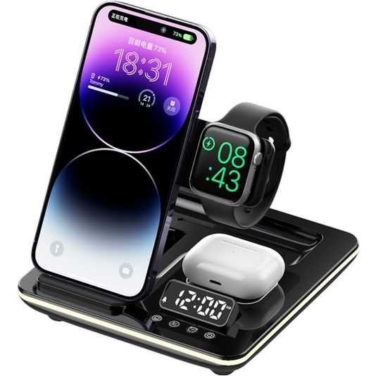 Mobigear AlarmDock Qi Laadstation voor Telefoon / AirPods en Apple Watch met Wekker - Zwart