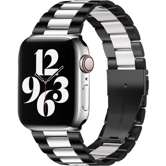 Kies deze Mobigear Antwerp Apple Watch band in de kleur zwart / wit voor een tijdloze en elegante look die moeiteloos bij elke outfit past. Een stalen Apple Watch band is geschikt voor elke gelegenheid, van informeel tot zakelijk. Het gewicht van staal geeft een gevoel van soliditeit en balans aan de pols, wat veel dragers als prettig ervaren. Daarnaast is de roestvrij stalen Apple Watch band bestand tegen corrosie en vlekken, wat het ideaal maakt voor allerlei activiteiten en weersomstandigheden. De Mobigear Antwerp band is gemakkelijk schoon te maken en vergt minimaal onderhoud.