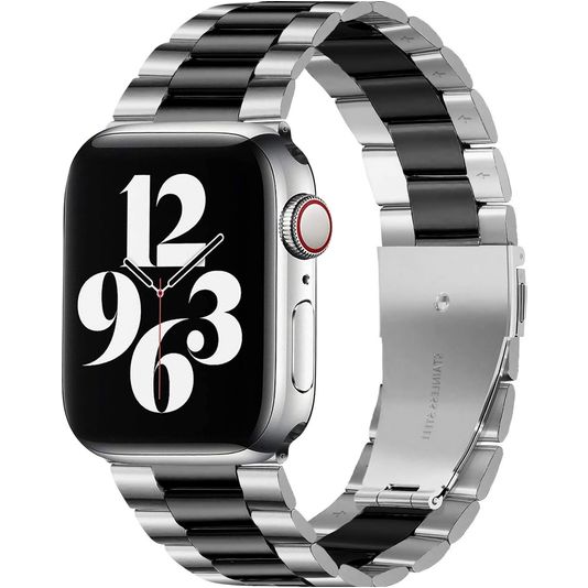 Mobigear Antwerp Stalen Apple Watch Bandje Vouwsluiting - 42/41/40/38 mm - Zwart / Zilver