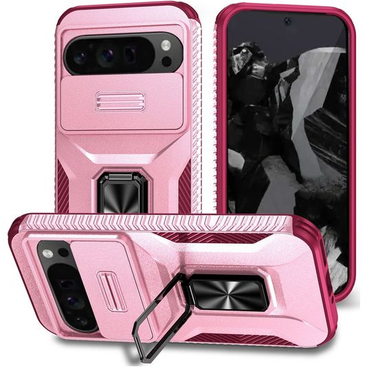 Mobigear Armor Ring Cam Slide Google Pixel 9 Pro XL Hoesje Hardcase Backcover Shockproof met Ringhouder en Camera Slider - Roze