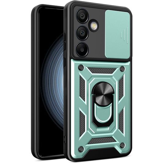 Mobigear Armor Ring Cam Slide Samsung Galaxy S24 FE Hoesje Hardcase Backcover Shockproof met Ringhouder en Camera Slider - Groen