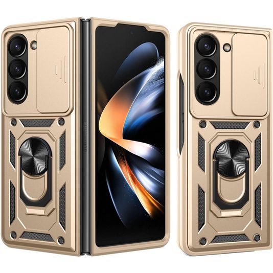 Mobigear Armor Ring Cam Slide Samsung Galaxy Z Fold 7 Hoesje Hardcase Backcover Shockproof met Ringhouder en Camera Slider - Goud