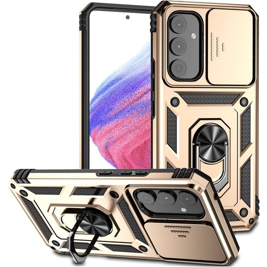 Bescherm je Samsung Galaxy A54 tegen ongelukken en schade bij valpartijen. De Mobigear Armor Ring Cam Slide backcover biedt hoge valbescherming, en is speciaal ontworpen om schokken en stoten op te vangen. Daardoor vertrouw je erop dat je Samsung Galaxy A54 veilig blijft. De stevige constructie en schokabsorberende materialen bieden uitstekende bescherming bij het dagelijks gebruik.