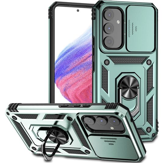 Bescherm je Samsung Galaxy A54 tegen ongelukken en schade bij valpartijen. De Mobigear Armor Ring Cam Slide backcover biedt hoge valbescherming, en is speciaal ontworpen om schokken en stoten op te vangen. Daardoor vertrouw je erop dat je Samsung Galaxy A54 veilig blijft. De stevige constructie en schokabsorberende materialen bieden uitstekende bescherming bij het dagelijks gebruik.