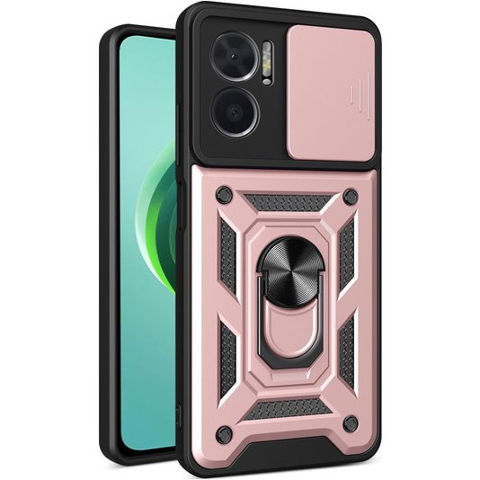 Wil je extra comfort bij het vasthouden van je telefoon? Dan is het Mobigear Armor Ring Cam Slide Xiaomi Redmi 10 5G hoesje met ringhouder de perfecte keuze. Het stevig kunststof backcover hoesje is uitgevoerd in de kleur roségoud. Door de uitklapbare ring kan je je telefoon goed vasthouden, bijvoorbeeld bij het maken van foto's en video's. De ring werkt ook als standaard waardoor jij je Xiaomi Redmi 10 5G rechtop zet om video's of foto's te bekijken. Kies voor comfort en gemak met dit Mobigear Armor Ring Cam Slide hoesje voor Xiaomi Redmi 10 5G. Bij deze backcover is je scherm niet bedekt. Bestel een Xiaomi Redmi 10 5G screenprotector mee voor volledige bescherming.