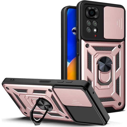Mobigear Armor Ring Cam Slide Xiaomi Redmi Note 11 4G Hoesje Hardcase Backcover Shockproof met Ringhouder en Camera Slider - Roségoud