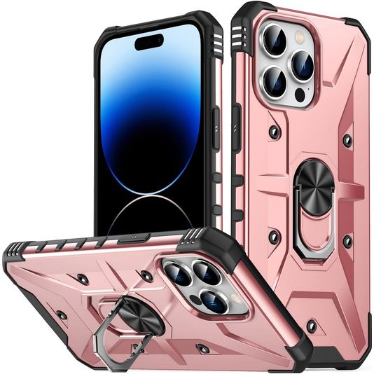 Mobigear Armor Ring iPhone 14 Pro Hoesje Hardcase Backcover Shockproof met Ringhouder - Roségoud
