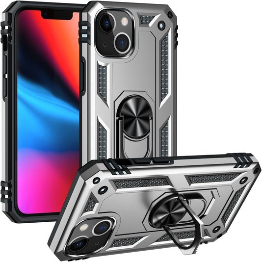 Mobigear Armor Ring iPhone 14 Hoesje Hardcase Backcover Shockproof met Ringhouder - Zilver