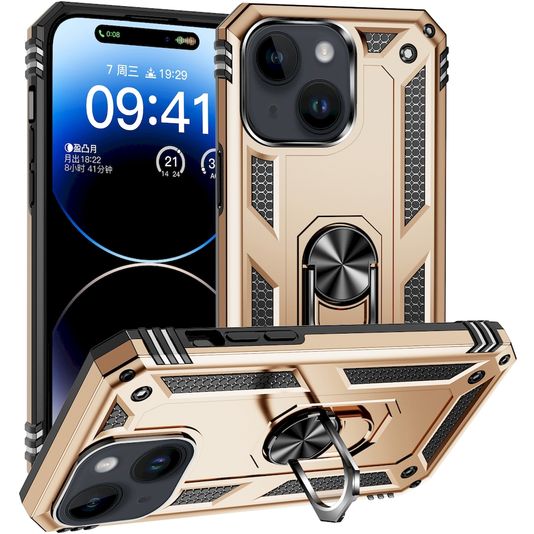 Mobigear Armor Ring iPhone 15 Plus Hoesje Hardcase Backcover Shockproof met Ringhouder - Goud