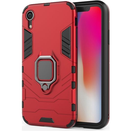 Mobigear Armor Ring iPhone XR Hoesje Hardcase Backcover Shockproof met Ringhouder - Rood