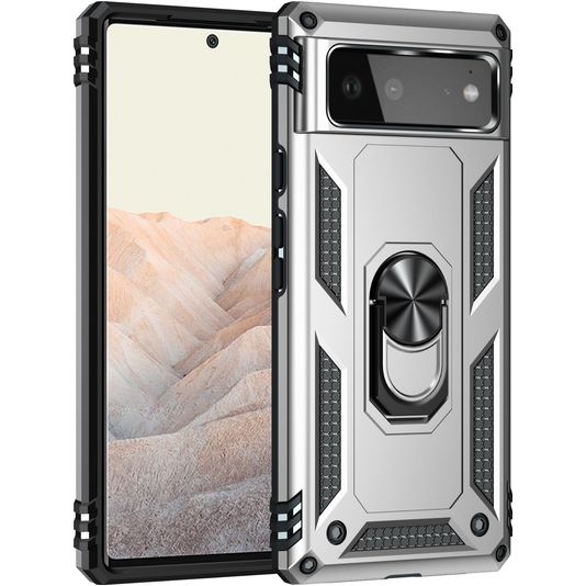 Mobigear Armor Ring Google Pixel 6 Hoesje Hardcase Backcover Shockproof met Ringhouder - Zilver