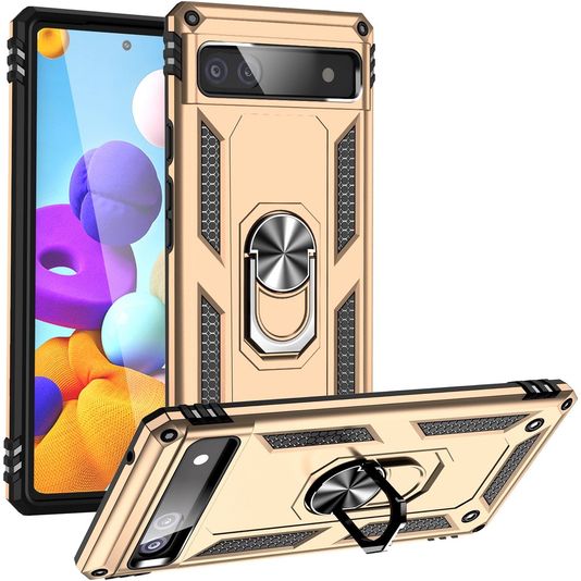 Mobigear Armor Ring Google Pixel 6a Hoesje Hardcase Backcover Shockproof met Ringhouder - Goud