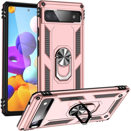 Mobigear Armor Ring Google Pixel 6a Hoesje Hardcase Backcover Shockproof met Ringhouder - Roségoud