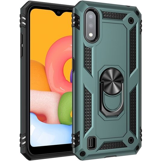 Mobigear Armor Ring Samsung Galaxy A01 Hoesje Hardcase Backcover Shockproof met Ringhouder - Groen