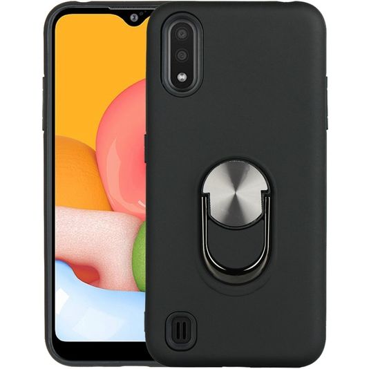 Mobigear Armor Ring Samsung Galaxy A01 Hoesje Hardcase Backcover Shockproof met Ringhouder - Zwart