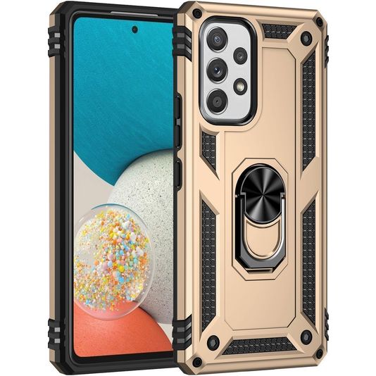Wil je extra comfort bij het vasthouden van je telefoon? Dan is het Mobigear Armor Ring Samsung Galaxy A53 hoesje met ringhouder de perfecte keuze. Het stevig kunststof backcover hoesje is uitgevoerd in de kleur goud. Door de uitklapbare ring kan je je telefoon goed vasthouden, bijvoorbeeld bij het maken van foto's en video's. De ring werkt ook als standaard waardoor jij je Samsung Galaxy A53 rechtop zet om video's of foto's te bekijken. Kies voor comfort en gemak met dit Mobigear Armor Ring hoesje voor Samsung Galaxy A53. Bij deze backcover is je scherm niet bedekt. Bestel een Samsung Galaxy A53 screenprotector mee voor volledige bescherming.