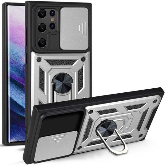 Geef je telefoon robuuste bescherming met de Mobigear Armor Ring Cam Slide backcover. Dit hoesje beschermd de achter- als zijkanten van je Samsung Galaxy S22 Ultra. Het stevige ontwerp biedt een solide verdediging tegen schade bij vallen en ongelukken.
