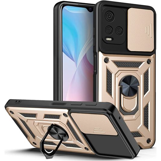 Mobigear Armor Ring Cam Slide Vivo Y21s Hoesje Hardcase Backcover Shockproof met Ringhouder en Camera Slider - Goud