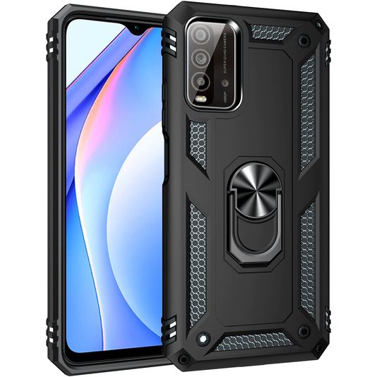 Mobigear Armor Ring Xiaomi Redmi 9T Hoesje Hardcase Backcover Shockproof met Ringhouder - Zwart