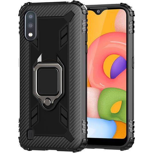 Mobigear Armor Ring Samsung Galaxy A01 Hoesje Flexibel TPU Backcover Shockproof met Ringhouder - Zwart