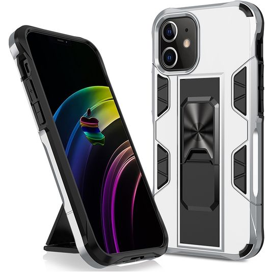 Mobigear Armor Stand iPhone 12 Pro Max Hoesje Hardcase Backcover Shockproof met Standaard - Zilver