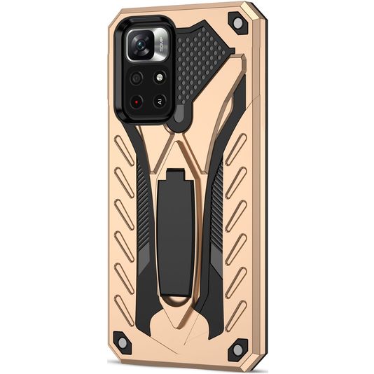 Mobigear Armor Stand POCO M4 Pro 5G Hoesje Hardcase Backcover Shockproof met Standaard - Goud