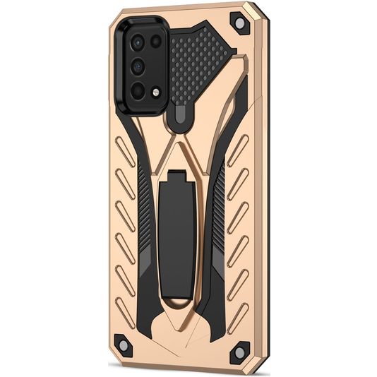 Kijk je regelmatig series of foto's op je telefoon? Dan is dit Mobigear Armor Stand Samsung Galaxy A03s hoesje met ingebouwde standaard een perfecte keuze. Dit Samsung Galaxy A03s backcover hoesje in de uitvoering goud is gemaakt van stevig kunststof. Het hoesje is voorzien van een uitklapbare standaard op de achterzijde, ideaal bij het bekijken van je favoriete foto's en video's. Bij deze backcover is je scherm niet bedekt. Bestel een Samsung Galaxy A03s screenprotector mee voor volledige bescherming.