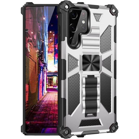 Geef je telefoon robuuste bescherming met de Mobigear Armor Stand backcover. Dit hoesje beschermd de achter- als zijkanten van je Samsung Galaxy S22 Ultra. Het stevige ontwerp biedt een solide verdediging tegen schade bij vallen en ongelukken.