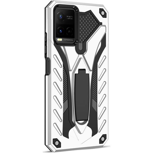 Mobigear Armor Stand Vivo Y33s Hoesje Hardcase Backcover Shockproof met Standaard - Zilver