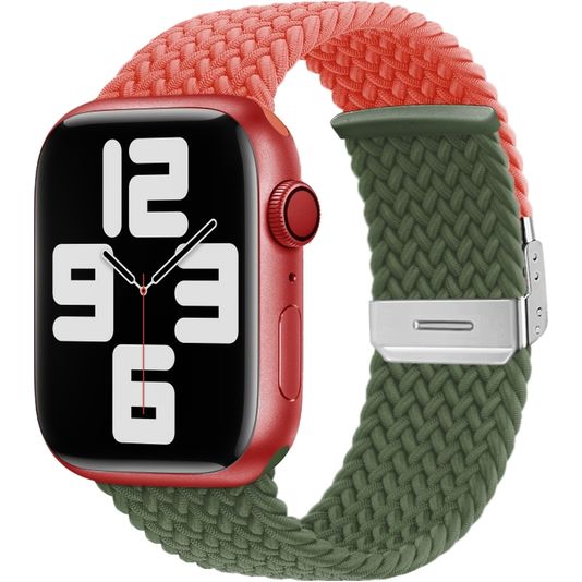 Mobigear Braided Dual Nylon Apple Watch Bandje Klemsluiting - 49/46/45/44 mm - Groen / Oranje
