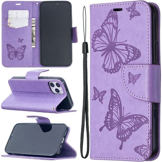 Mobigear Butterfly iPhone 12 Pro Hoesje Bookcase Portemonnee - Paars