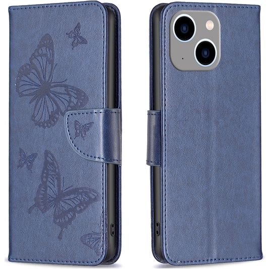 Mobigear Butterfly iPhone 15 Plus Hoesje Bookcase Portemonnee - Blauw