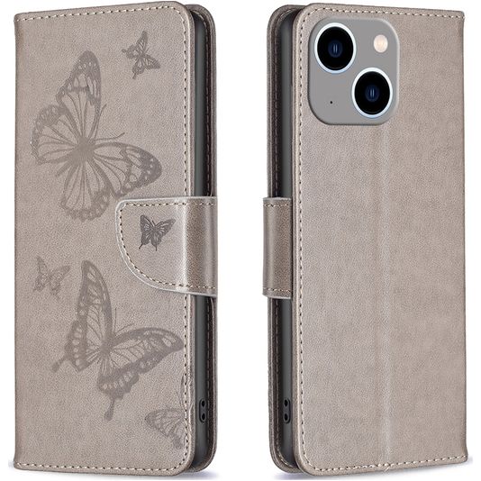 Mobigear Butterfly iPhone 15 Plus Hoesje Bookcase Portemonnee - Grijs