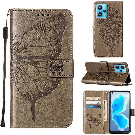 Mobigear Butterfly Realme 9 Pro Plus Hoesje Bookcase Portemonnee - Grijs