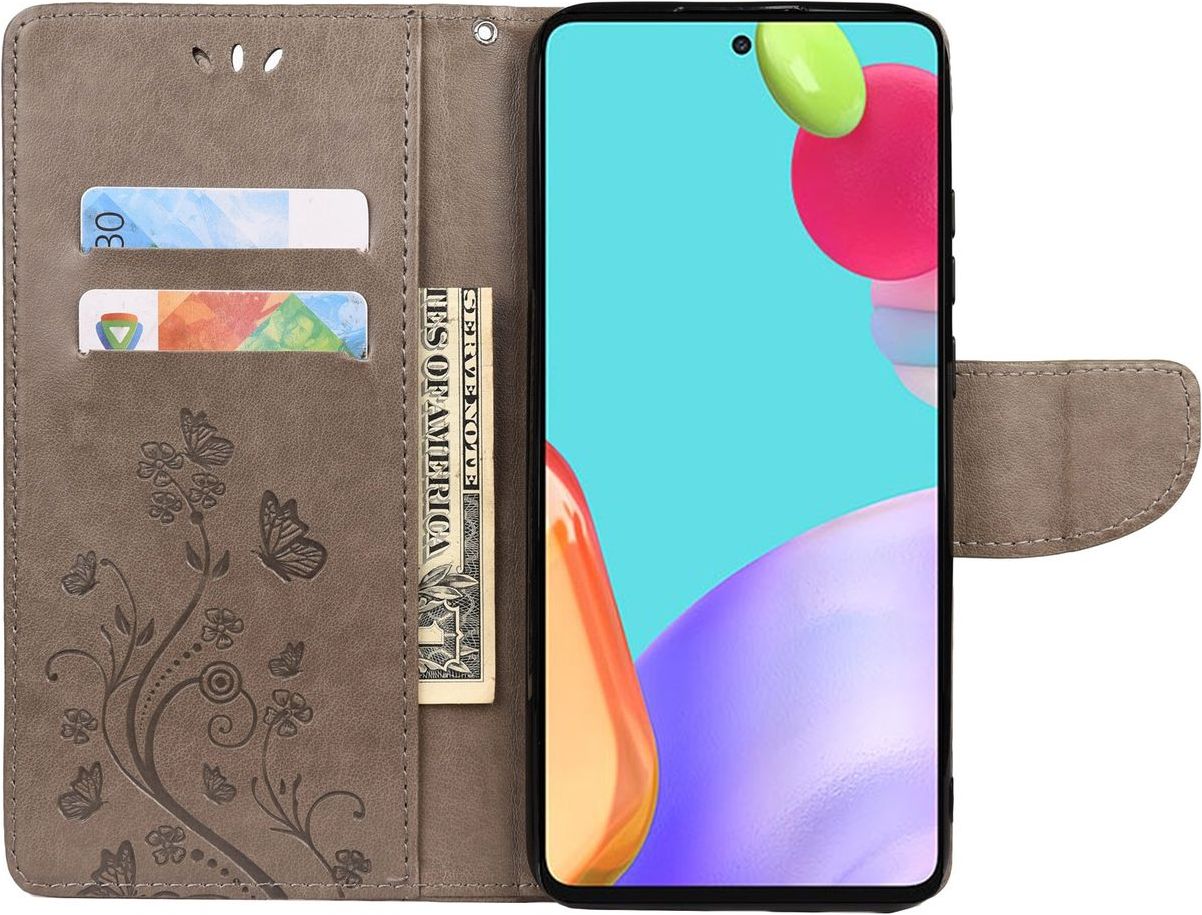 Mobigear Flowers Samsung Galaxy A23 Hoesje Bookcase Portemonnee - Grijs
