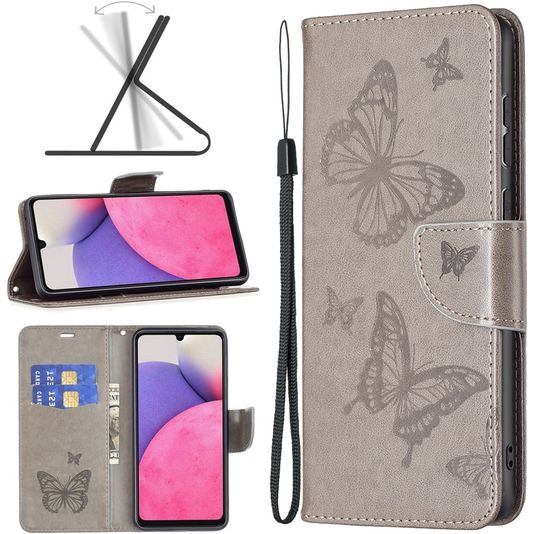 Wil je geen standaard hoesje voor jouw Samsung Galaxy A33? Kies dan voor deze leuke Mobigear Butterfly Samsung Galaxy A33 bookcase. Dit hoesje zorgt ervoor dat jouw Samsung Galaxy A33 niet alleen goed beschermd is tegen vallen en stoten, maar daarnaast ook voorzien is van een leuk Butterfly design. Zo maak je van jouw telefoon een echte eyecatcher. De Mobigear Butterfly bookcase in de uitvoering Butterfly grijs is gemaakt van hoogwaardig kunstleer. Met een boekhoesje is je Samsung Galaxy A33 rondom uitstekend beschermd. De voorklep opent opzij als een boek en sluit stevig met een magnetische sluiting. Er is ruimte voor 2 pasjes zodat je altijd je bankpas of ID bij de hand hebt.