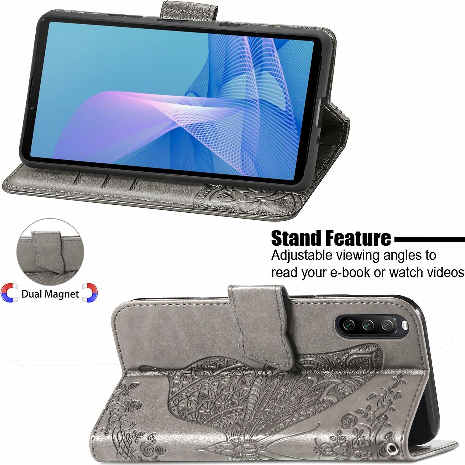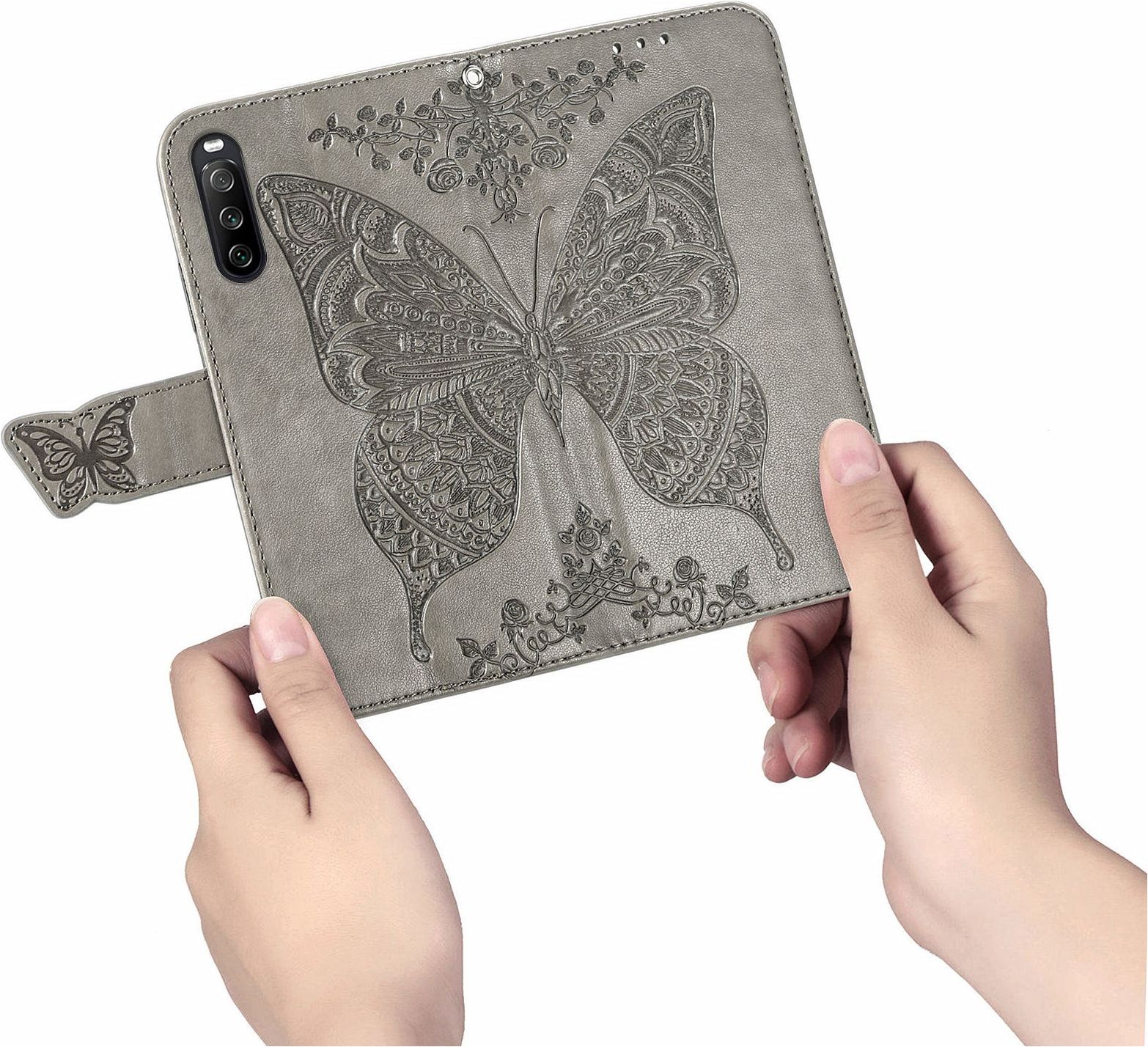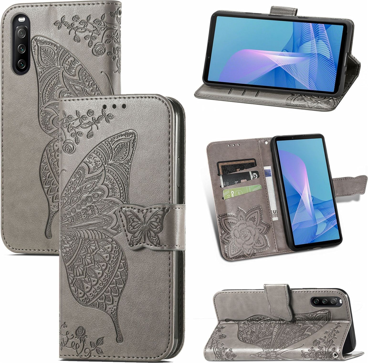 Mobigear Butterfly Sony Xperia 10 III Hoesje Bookcase Portemonnee - Grijs